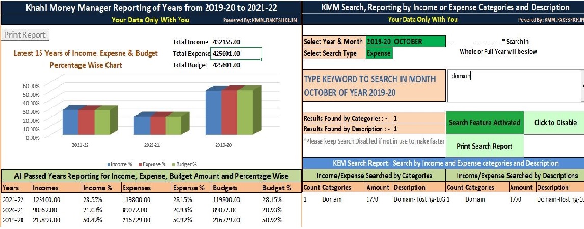 It is best tool to Manage your Income and Expense, as well you can plan your budget. Khahi Money Manager is the first tool in the world, who provide you 100% privacy during Managing you Income and Expense. Below are the key features.